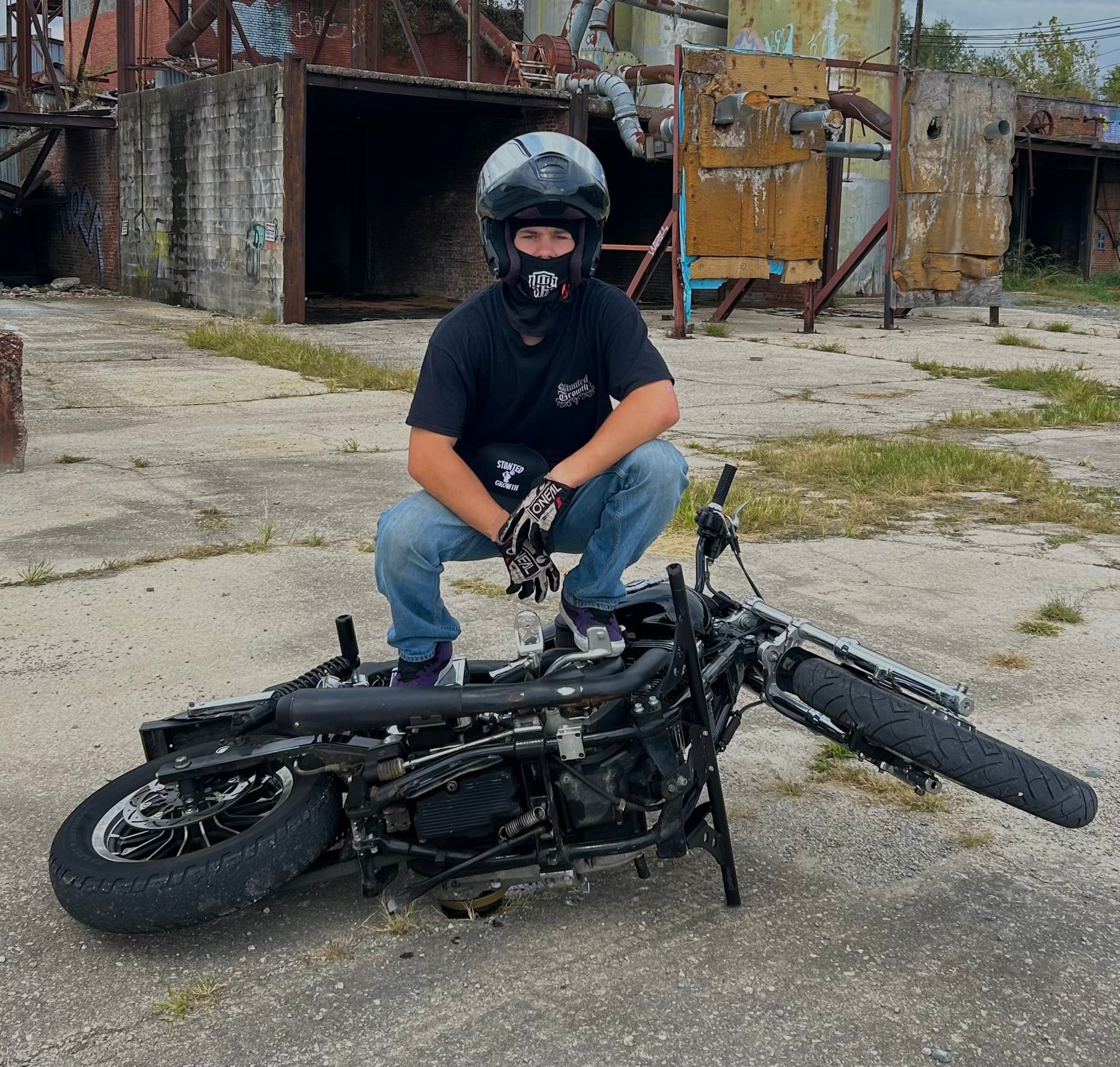 My name’s Alex, obviously lol. I started riding dirt bikes as a young kid and always wanted more. Riding in the dirt quickly turned into a passion for doing dope ass shit—from plowing over a berm on my first KX110 at the track to later jumping my 250 over my buddy’s pre-runners. I found that riding streets and lots on bigger bikes was just as fun, if not more fun. Sharing our version of the sport with the people around us, and putting smiles on everyone’s faces, makes all the loops and high sides worth it.